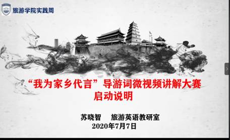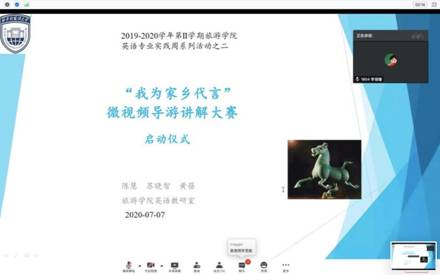 为了进一步加强实践教学工作,不断完善实践教学管理,增强学生实践能力和创新能力, 提高学生的外语学习兴趣和综合运用能力,威尼斯432888cam英语专业于2020年7月7日(周二)上午8:30-10:00线上腾讯会议召开“我为家乡代言”导游词微视频讲解大赛启动仪式。本次赛事活动由英语教研室陈慧、苏晓智、黄蓓三位老师负责,启动仪式由陈慧老师主持。